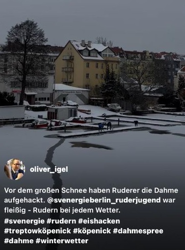 Entsprechend hat sich mittlerweile viel Eis auf den Berliner Gewässern gebildet, was aber für die Stege unseres Vereins auch akute Zerstörungsgefahr bedeutet.