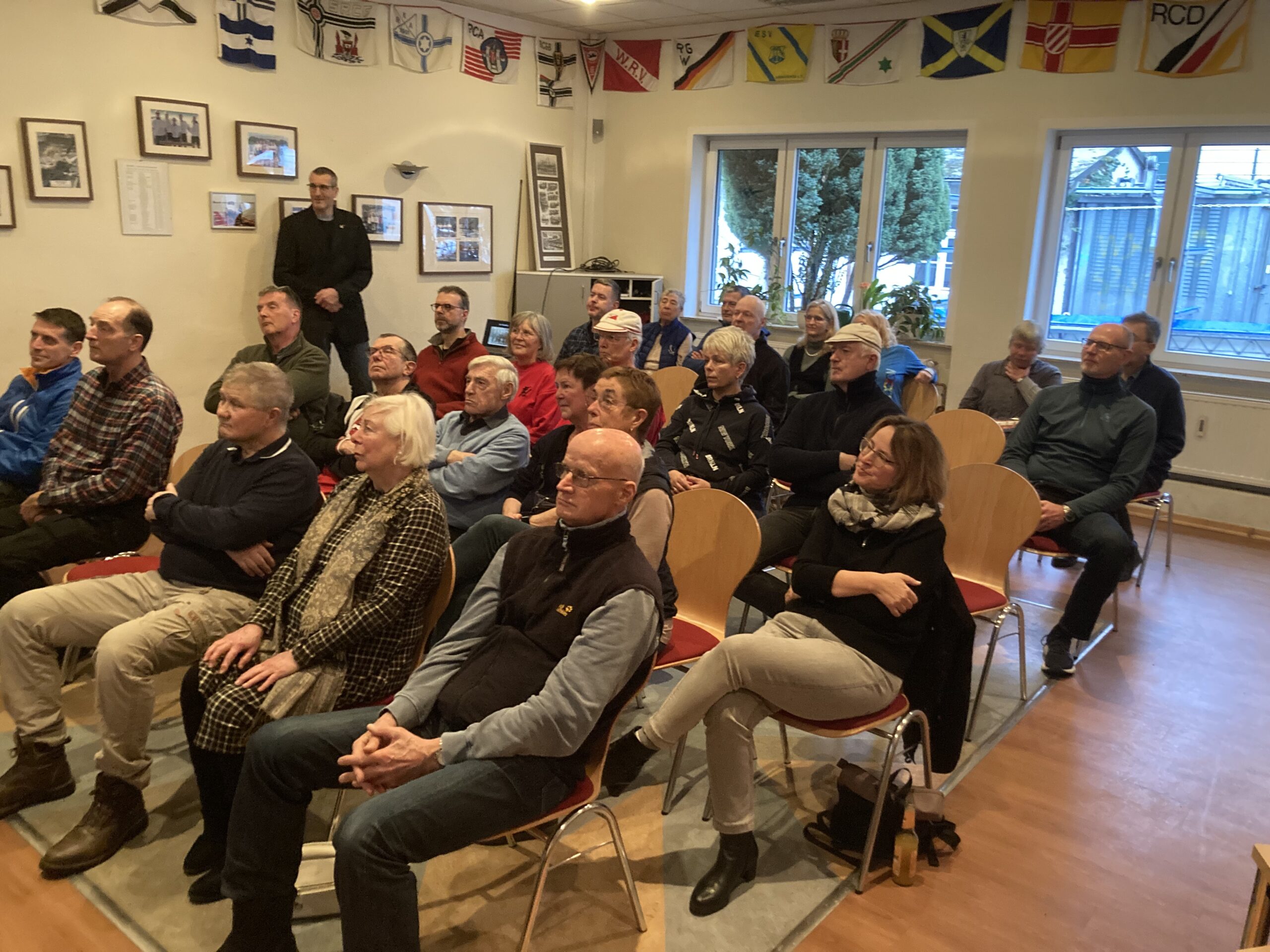 Kurz nach 16:00 Uhr am Freitag, 13. Februar 2026 habe ich die Beiden und 29 Gäste als literaturinteressiertes Fachpublikum in unserem Bootshaus begrüßt. Vom FRV, Pro Sport und SCBK waren auch einige Ruderfreunde gekommen.
