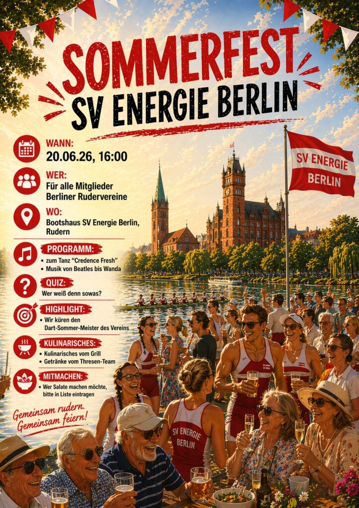 Deshalb unsere Bitte: wer Zeit und Lust hat, am 20.06.2026, 14:00 Uhr beim Aufbau, und/ oder beim Abbau am 21.6.26 ab 11:00 Uhr zu helfen, oder einen Salat zur Verfügung stellt, der trifft bitte dafür unten seine Auswahl. Wenn du schon auf der Liste im Bootshaus stehst, nutze das Formular nicht (Doppeleintragungen vermeiden).