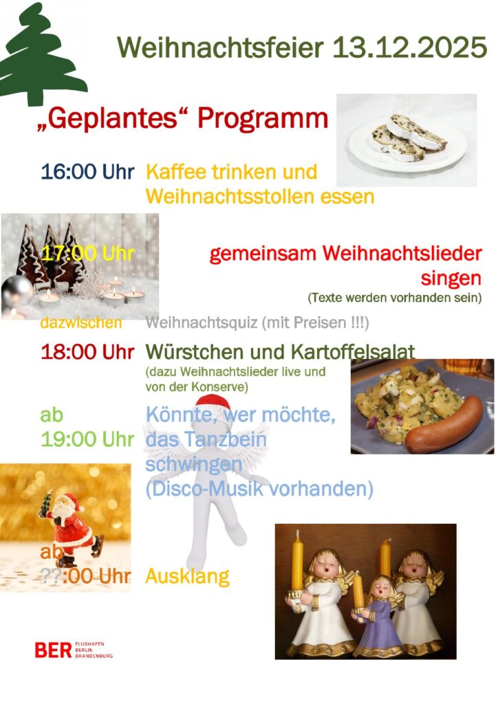 Deshalb unsere Bitte: wer Zeit und Lust hat, am Mittwoch den 10.12.25 den Saal mit Tischen und Stühlen einzurichten, kann sehr gerne helfen.